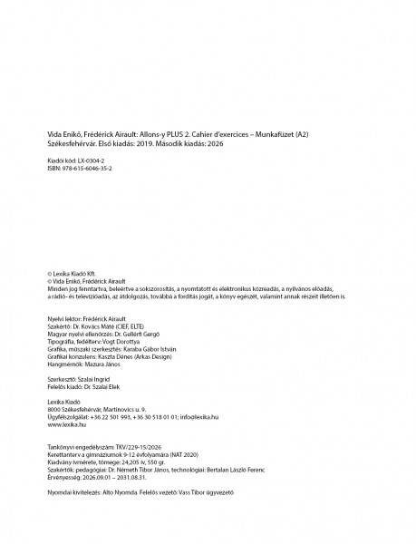 Allons-y PLUS 2. Cahier d’exercices – Munkafüzet (A2). Második kiadás