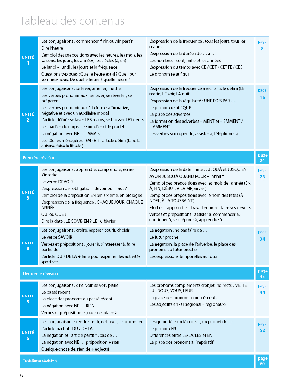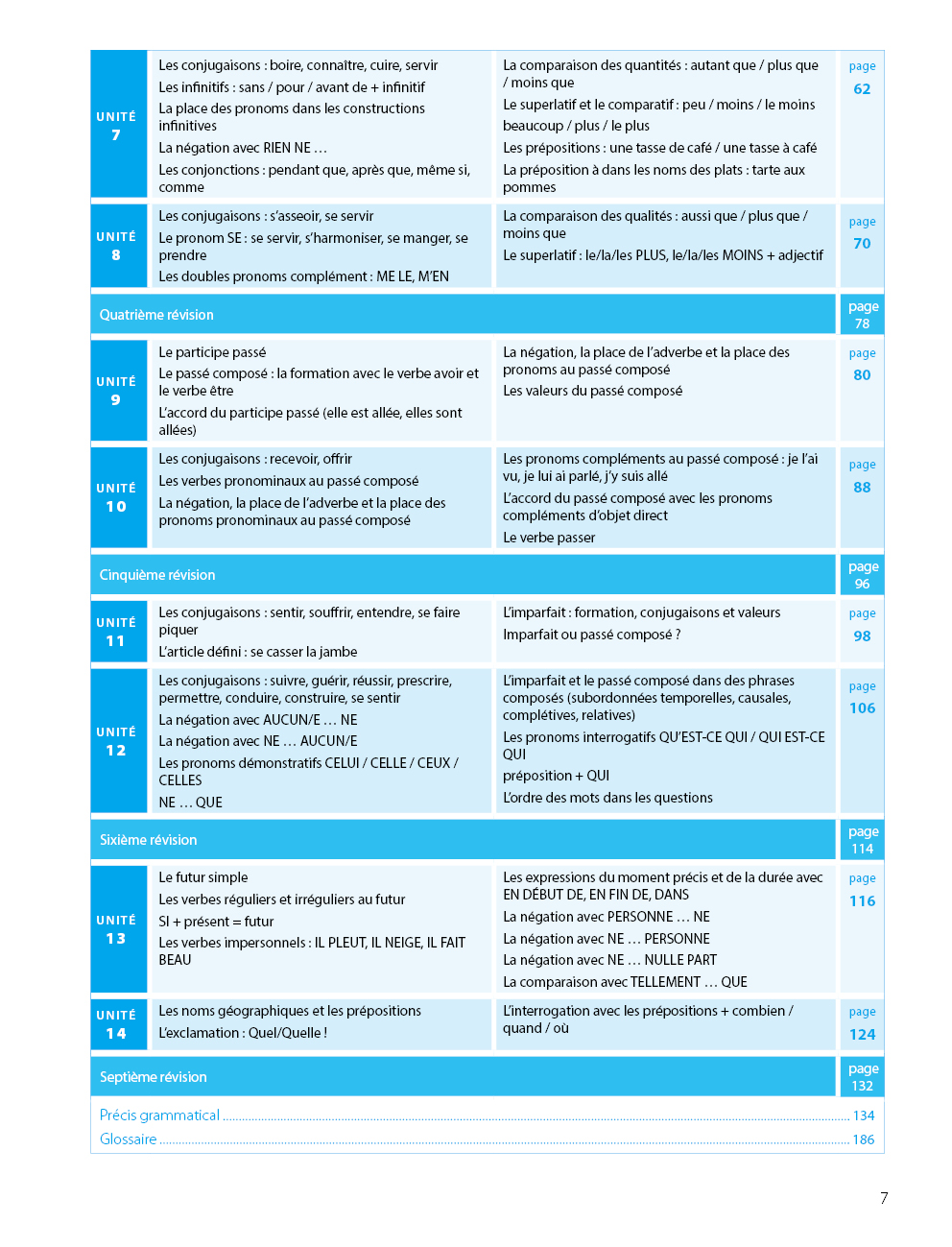 - nyelvtani összefoglaló (Précis grammatical) magyar nyelvű szabályismertetéssel, francia példamondatokkal és fordításukkal.