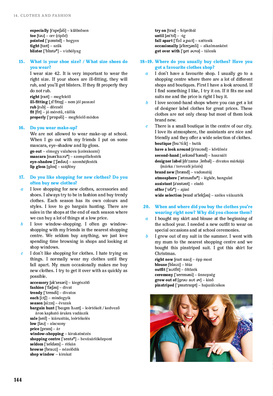 Angol nyelvkönyv elsősorban középiskolások számára az eredményes kommunikáció és élvezetes társalgás gyakorlásához. A felkészítőkönyv jól használható az angol nyelvvizsga és érettségi szóbeli részéhez.